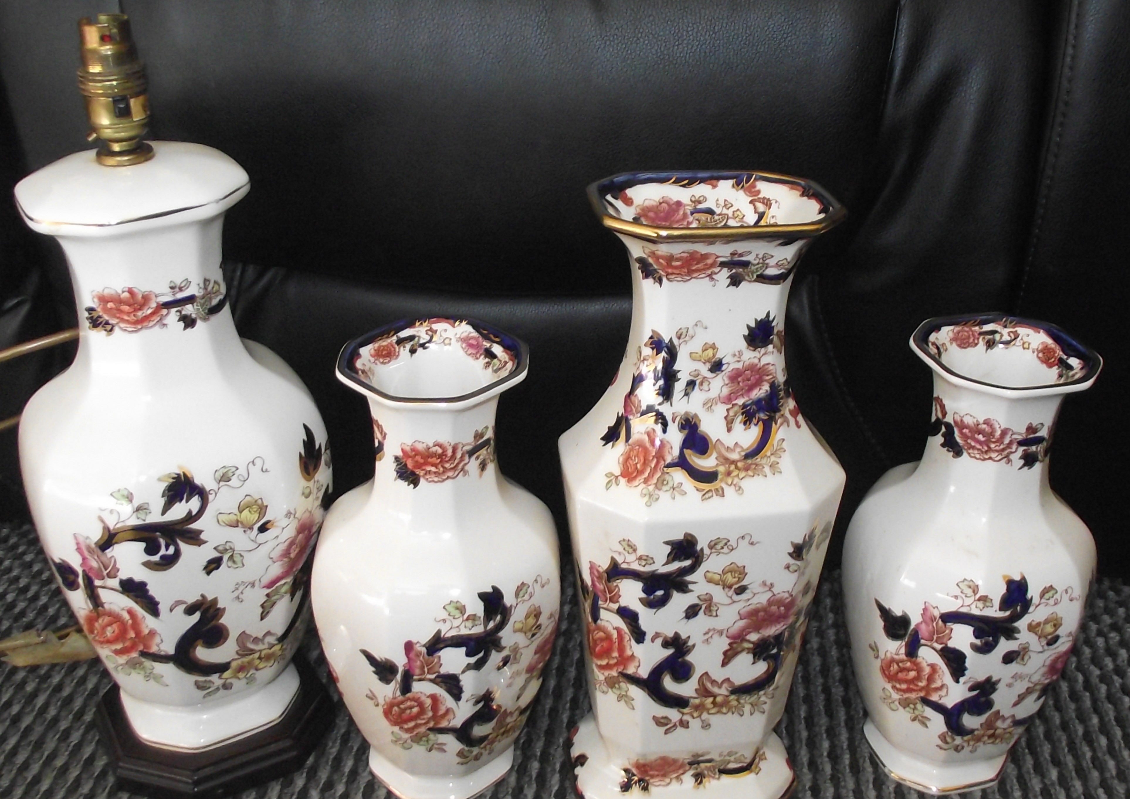 Masons mandalay lamp base large vase 13″ approx and 2 smaller vases (4)
