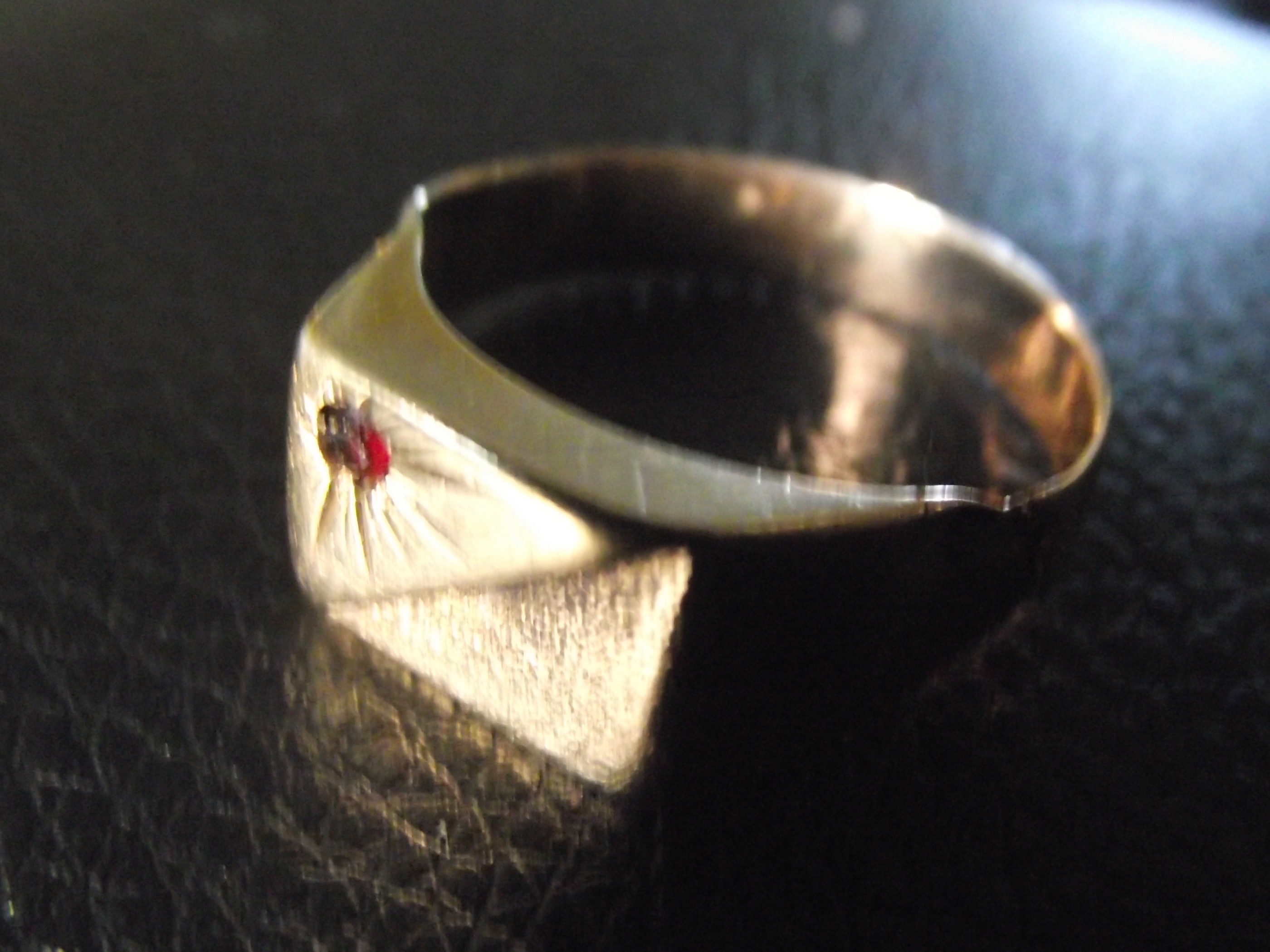 Gents broken 14ct gold signet ring set with small redstone unmarked Tested as 14ct 4.6g approx