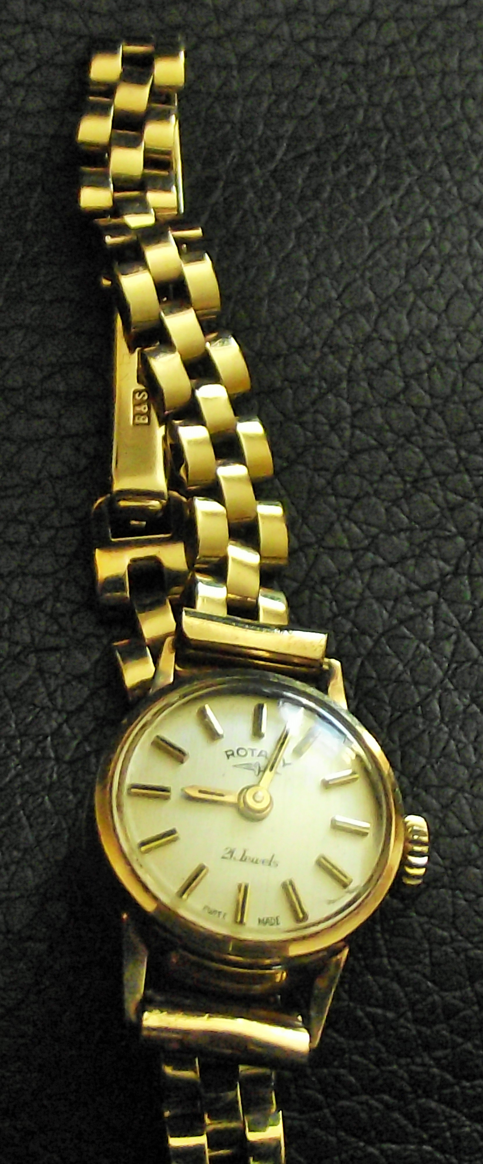 Rotary 9ct gold ladies wrist watch with 9ct gold bracelet 10.7g approx without movement ( not seen working ) 25 year presentation inscribed on reverse