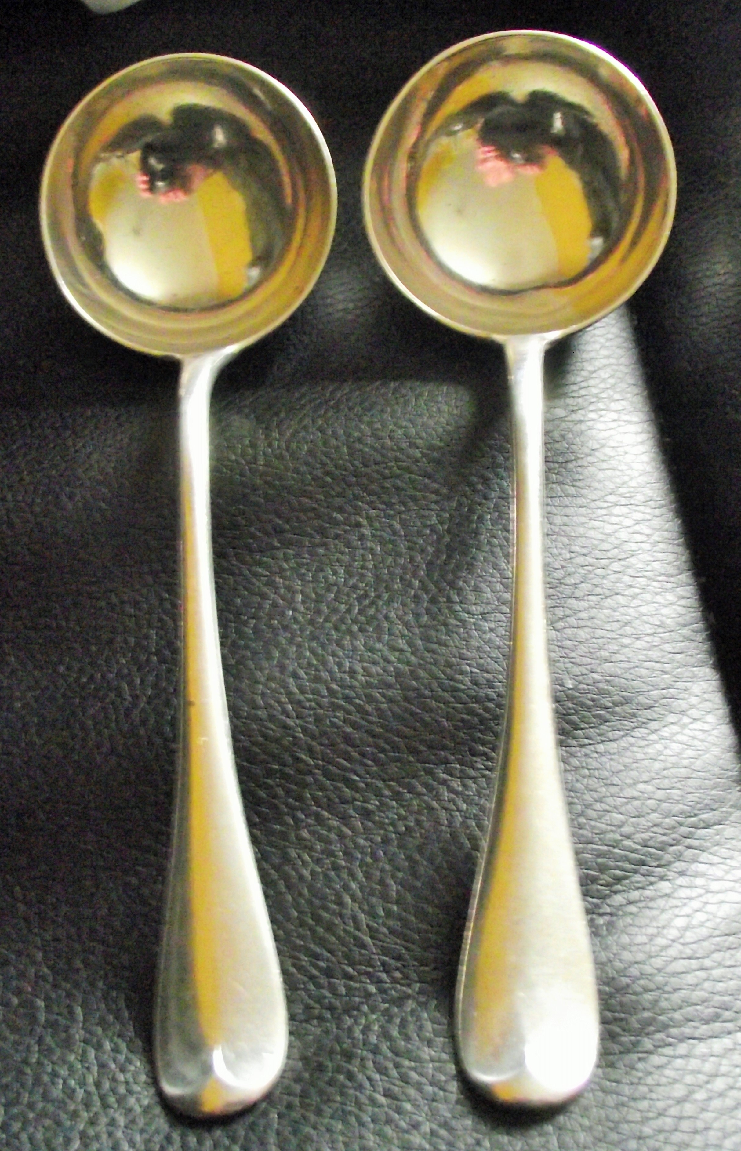 Pair of sterling silver soup spoons Francis Higgins11 1878 122g approx