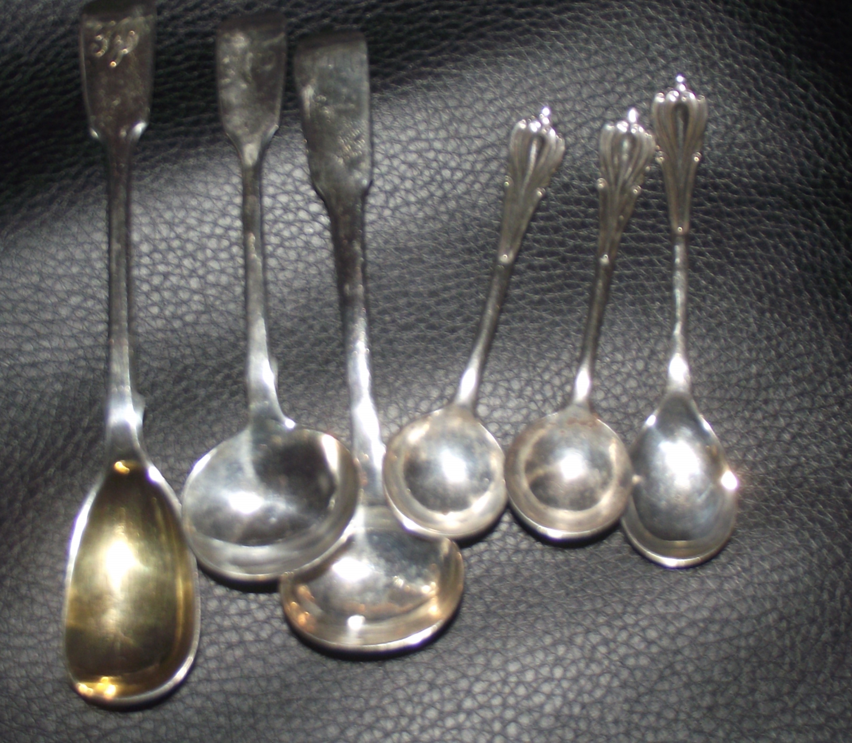 3x sterling silver salt spoons + 2x silver mustard spoons + 1x silver preserve spoon various makers 48g approx
