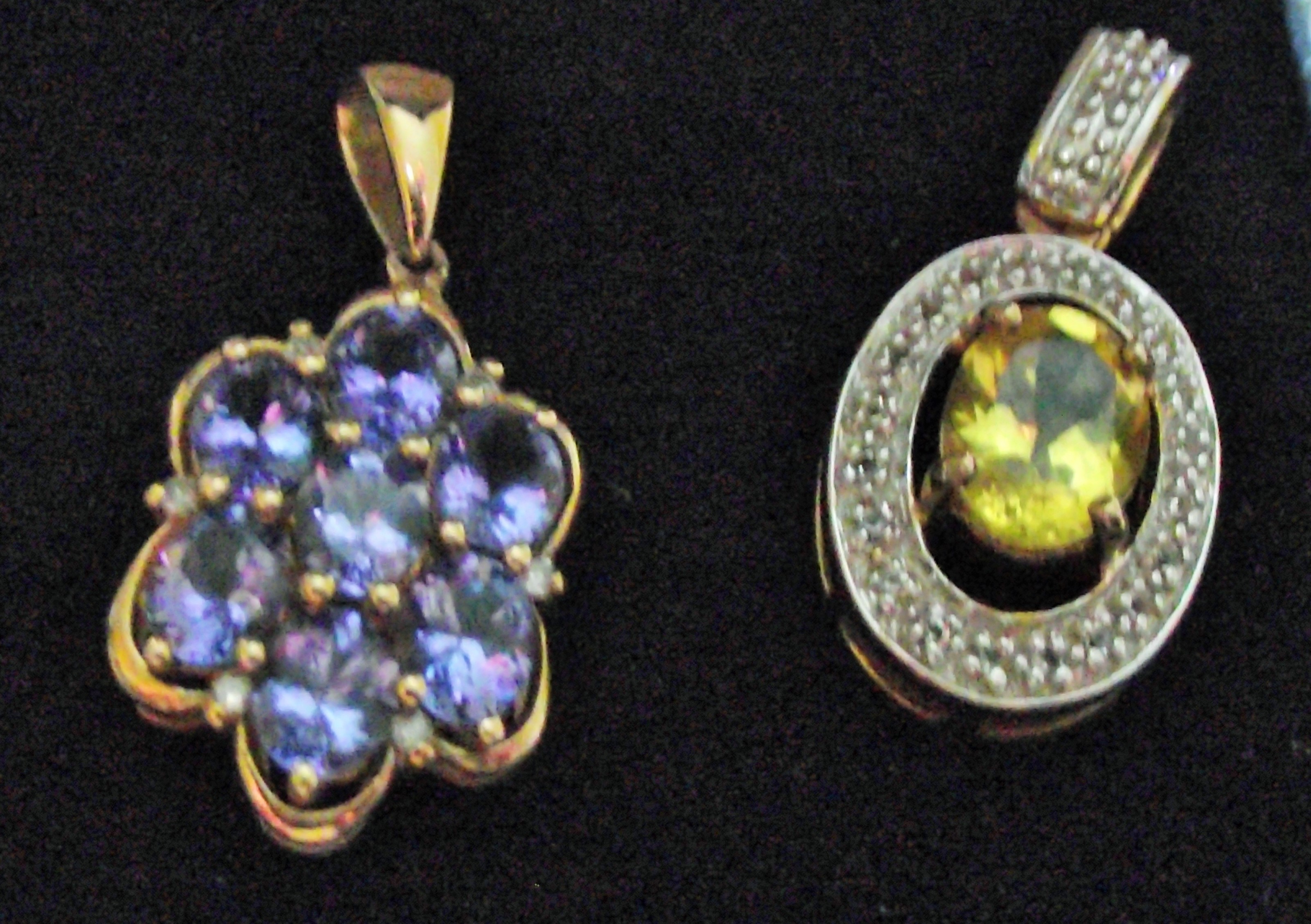 9ct yellow gold citrine & diamond set pendant+ 9ct yellow gold cabachon set Amathyst pendant both fully marked 4.75g approx
