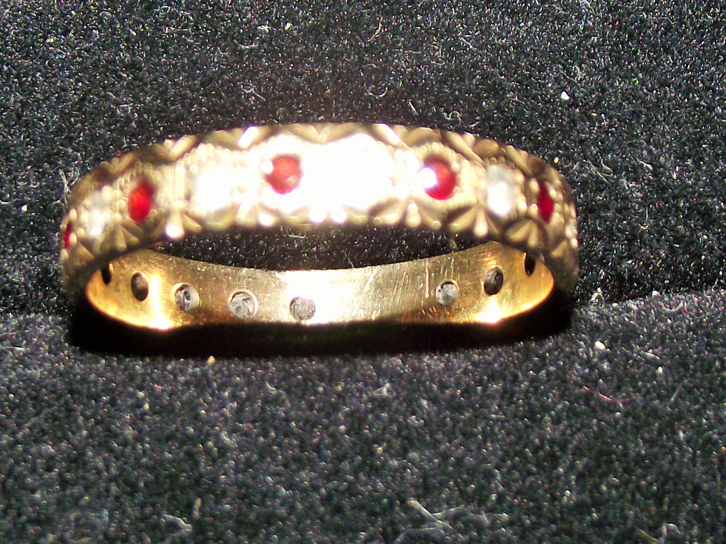 nice quality Ruby & Diamond set eternity ring size O fully marked 2g approx