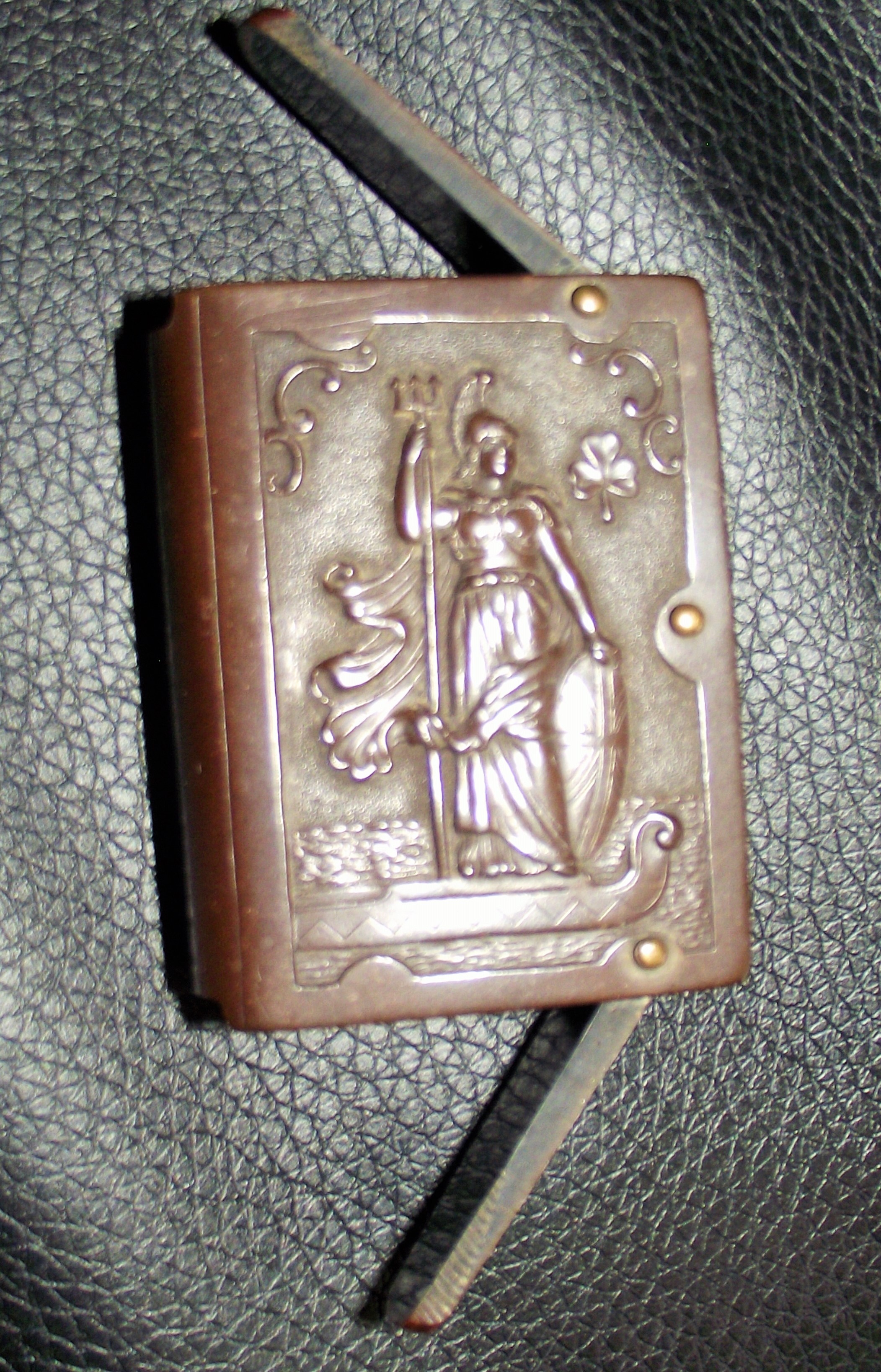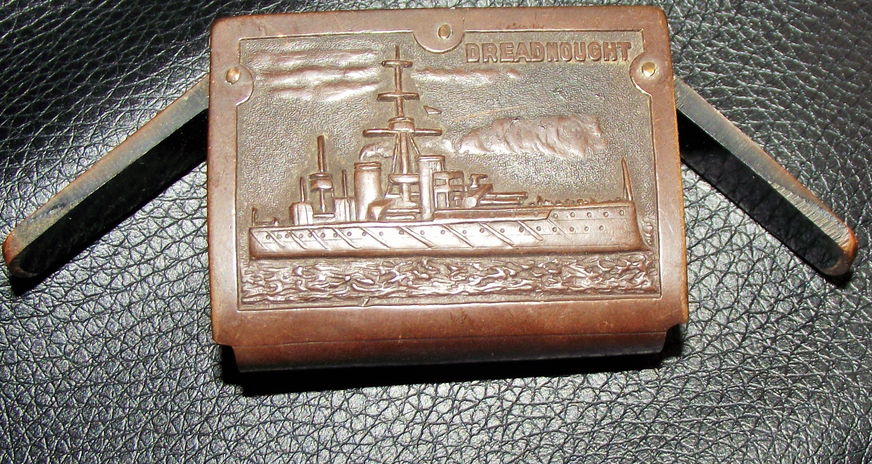 Rare vulcanite double sided matchstriker depicting HMS Dreadnought ( entered service 1906 ) reverse showing Britannia