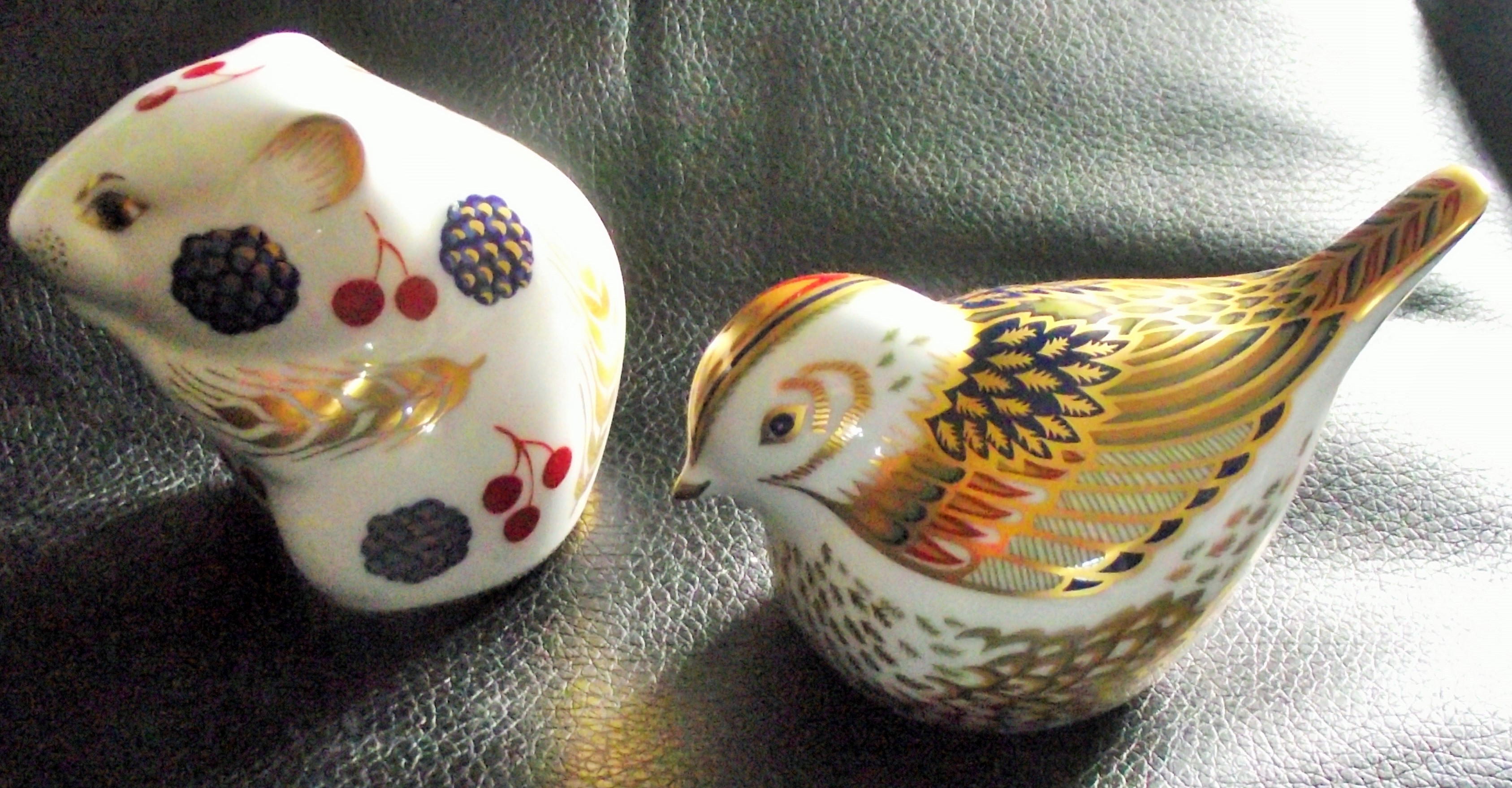 Royal crown Derby Firecrest bird with gold stopper + Royal Crown derbyHarvest mouse white stopper