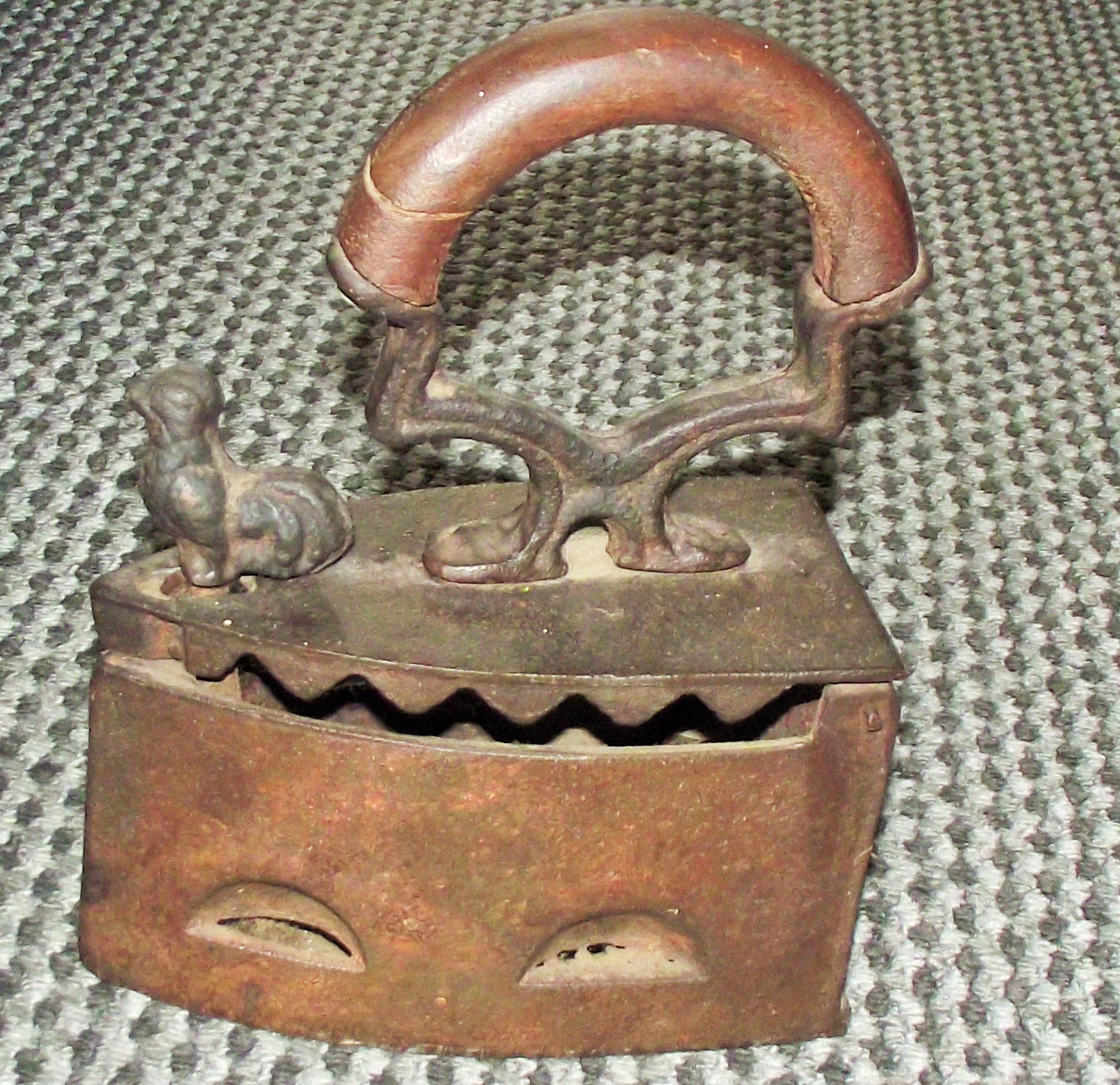 Antique Cast Iron flat coal Iron With Rooster Latch wooden handle