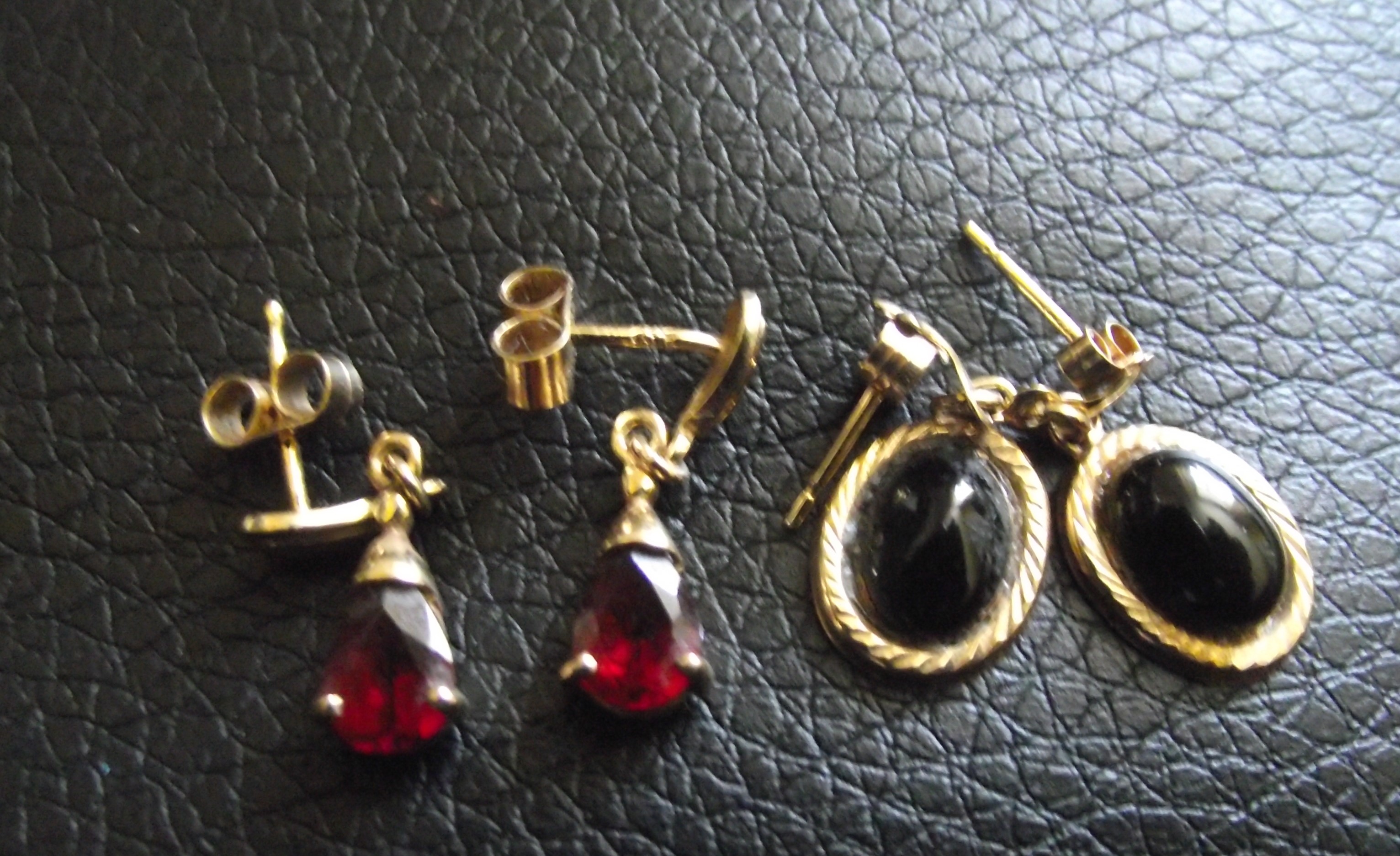 2 pairs of 9ct gold ladies red & blue stone set earrings 2.6g approx