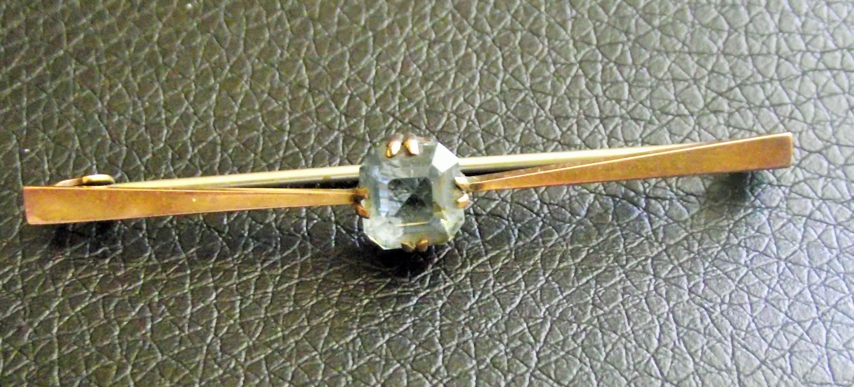 9ct goldaqua marine set pin brooch metal pin 2.39g approx