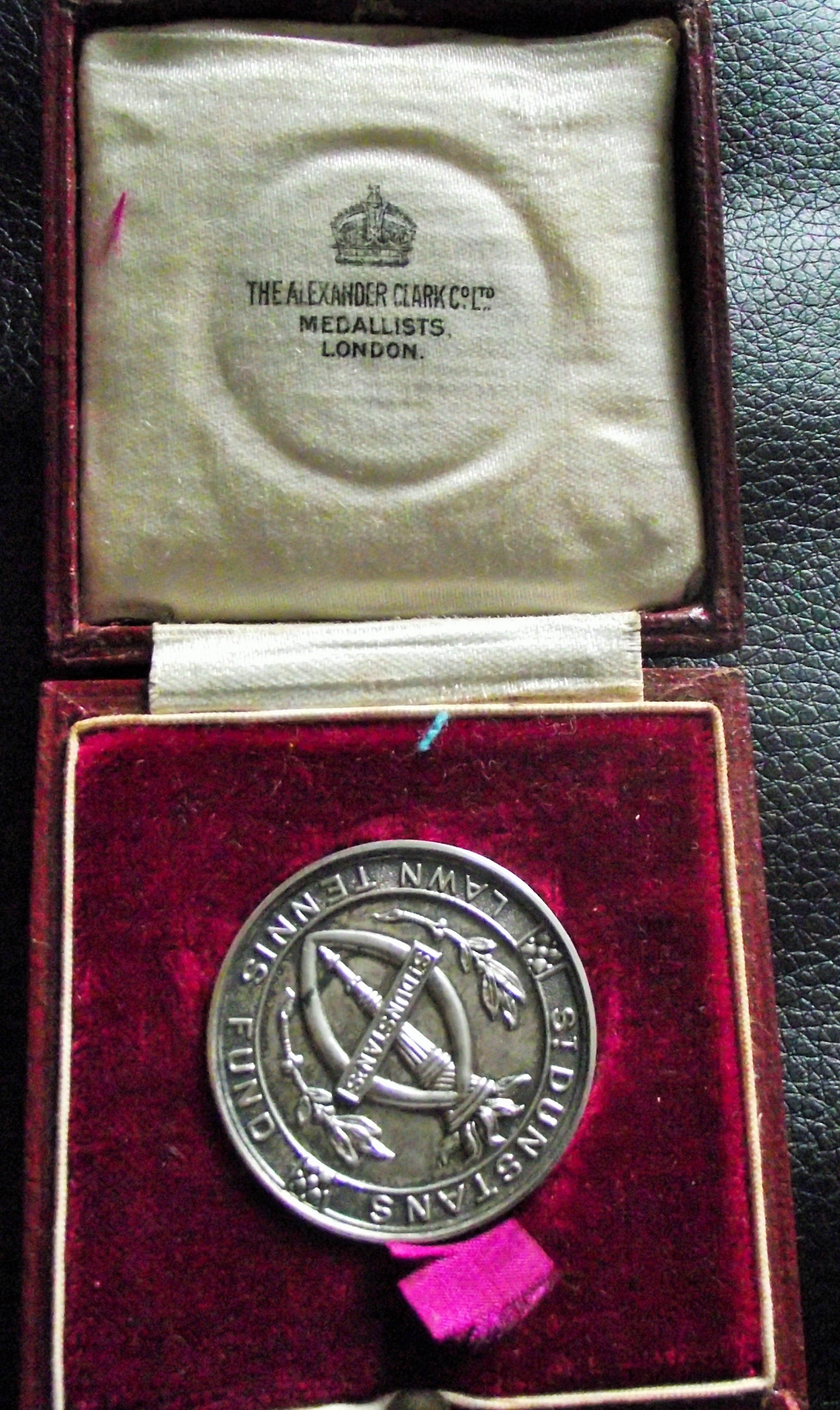 Rare St Dunstans lawn tennis fund silver medal Presented R Palmer 1921 18.5g approx in original case