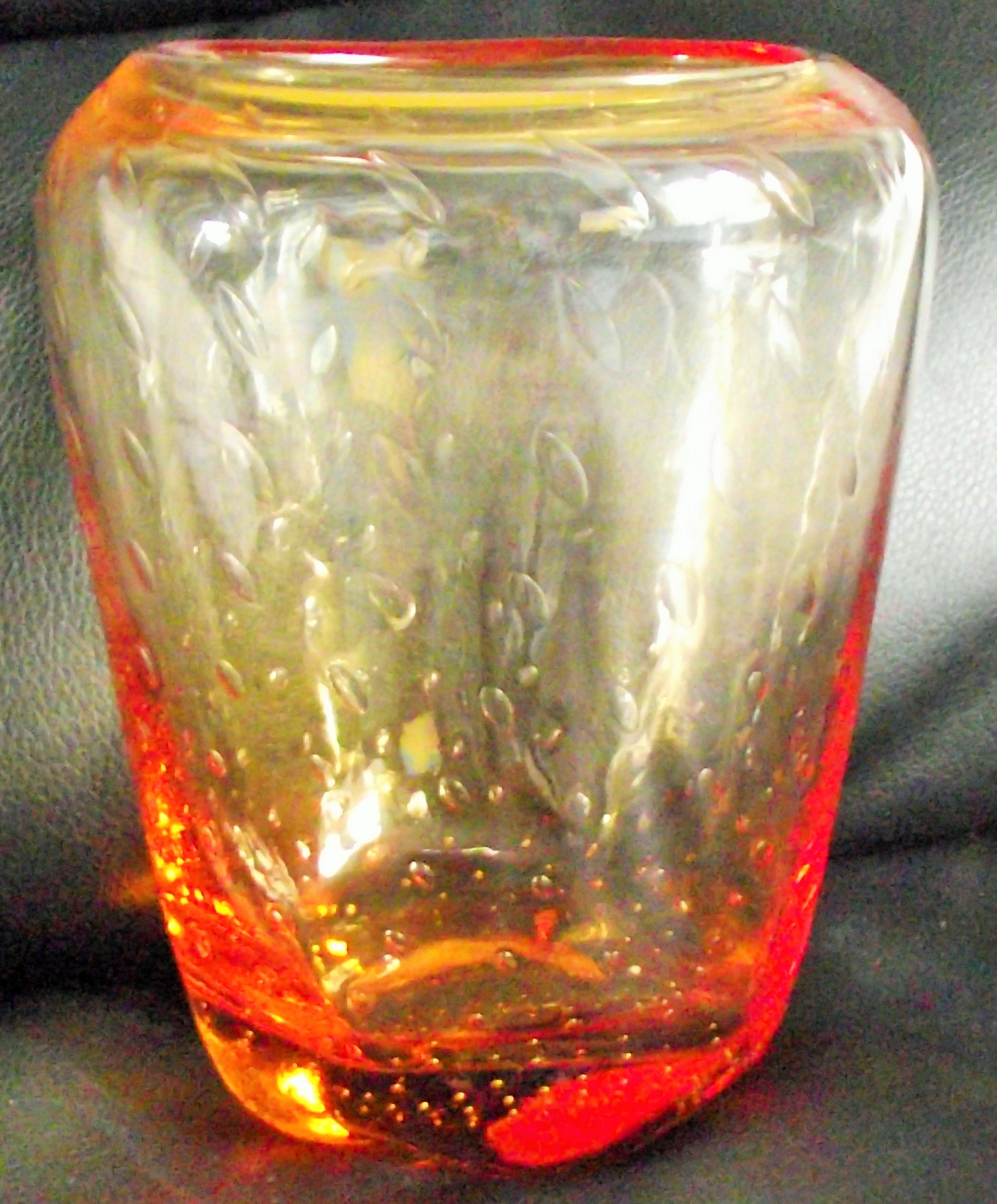 Whitefriars Controlled Bubbles Amber Vase Assymmetric Oval 7.5 Inches 1960s