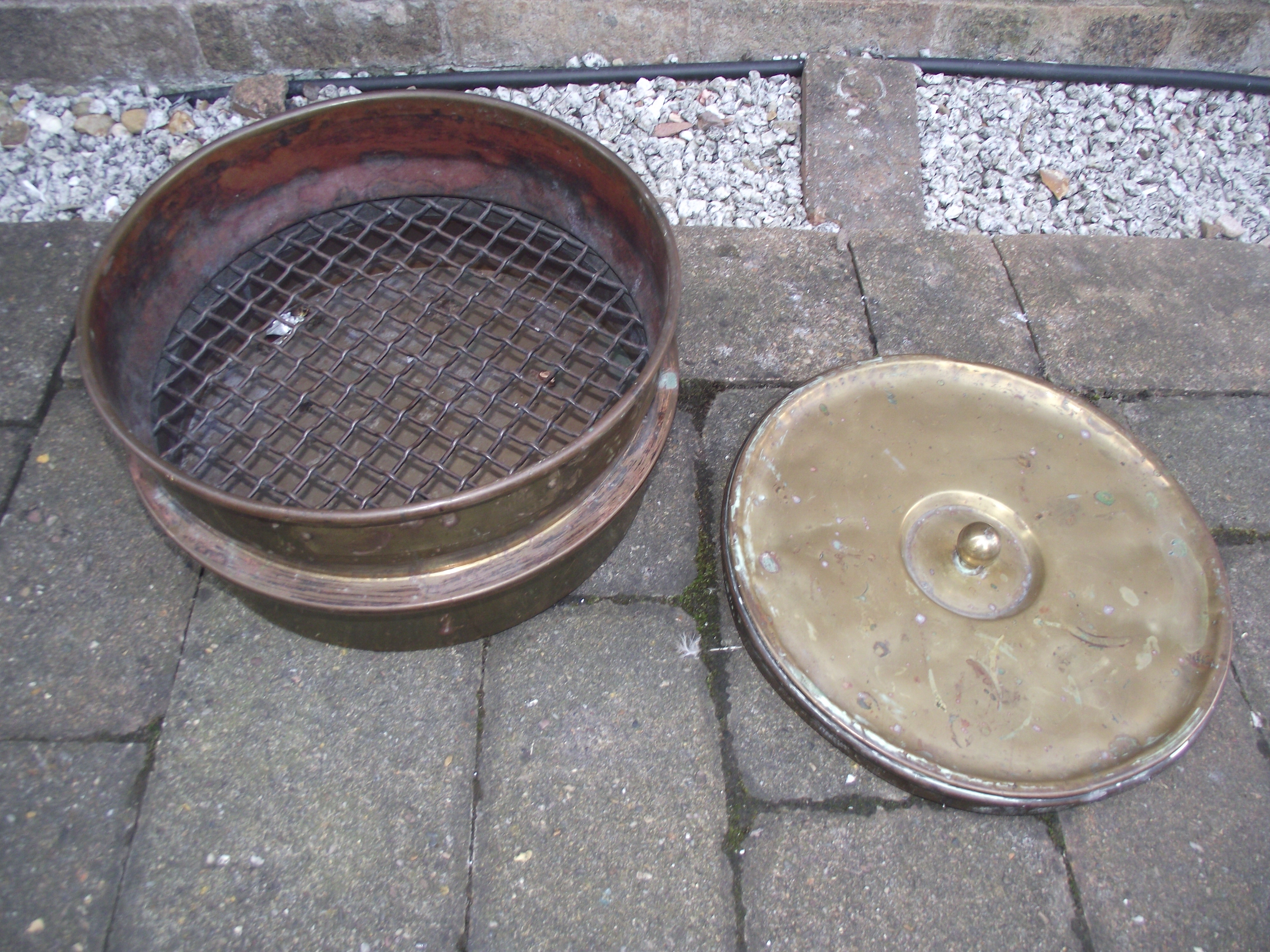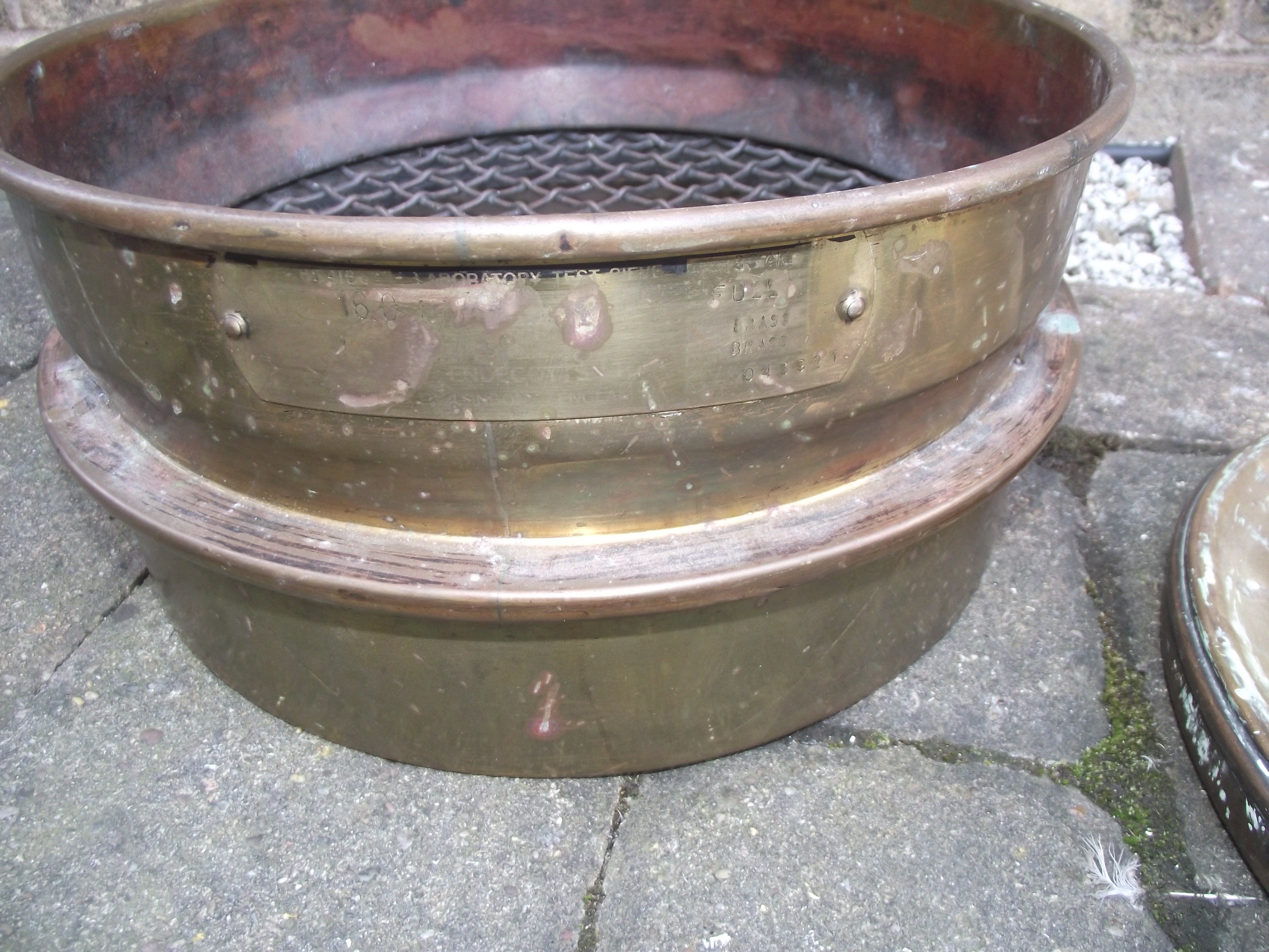 3 piece brass Laboratory 16mm mesh test sieve with plaque to side