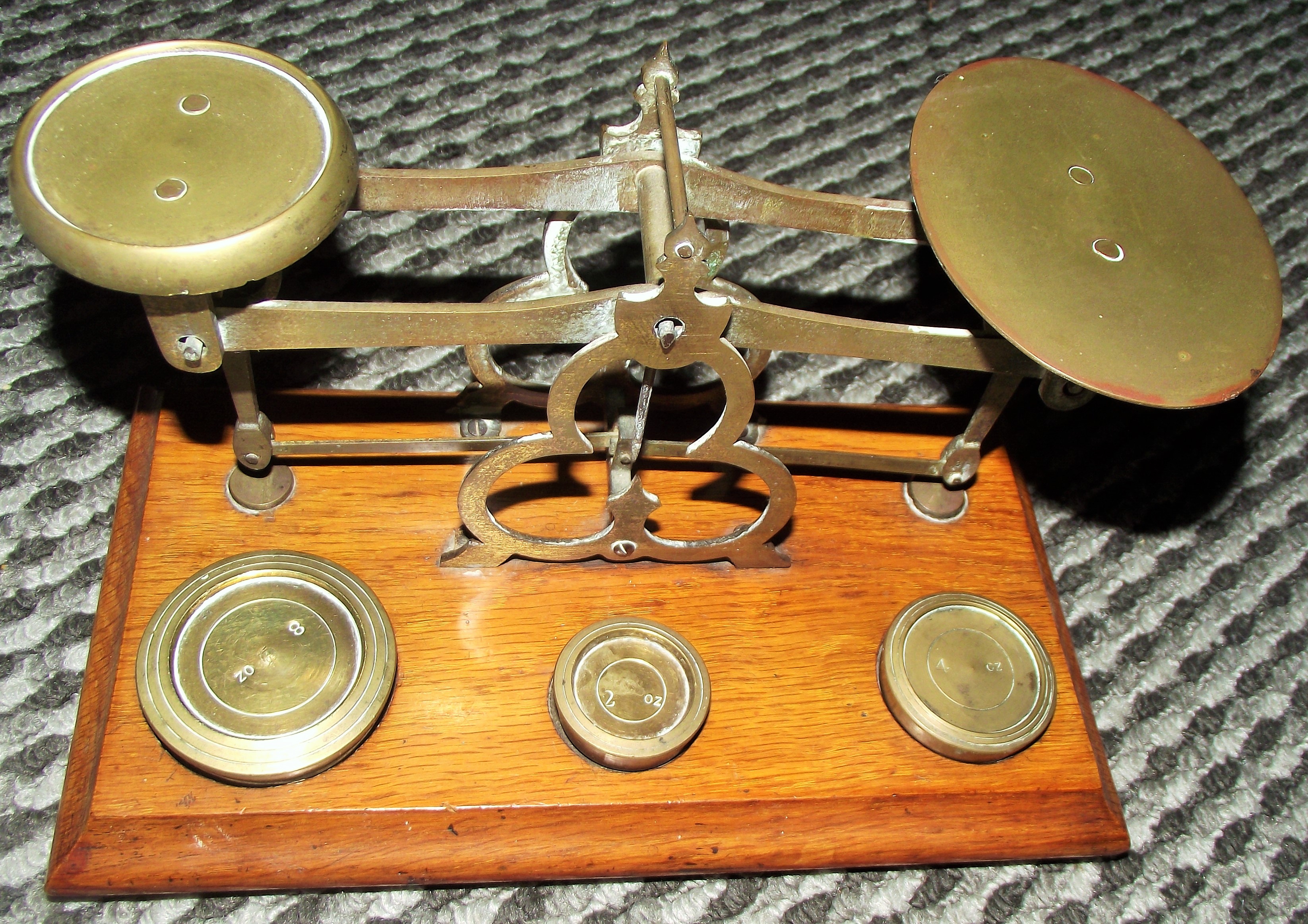 Set of Edwardian postal scales with 2, 4,& 8 oz weights