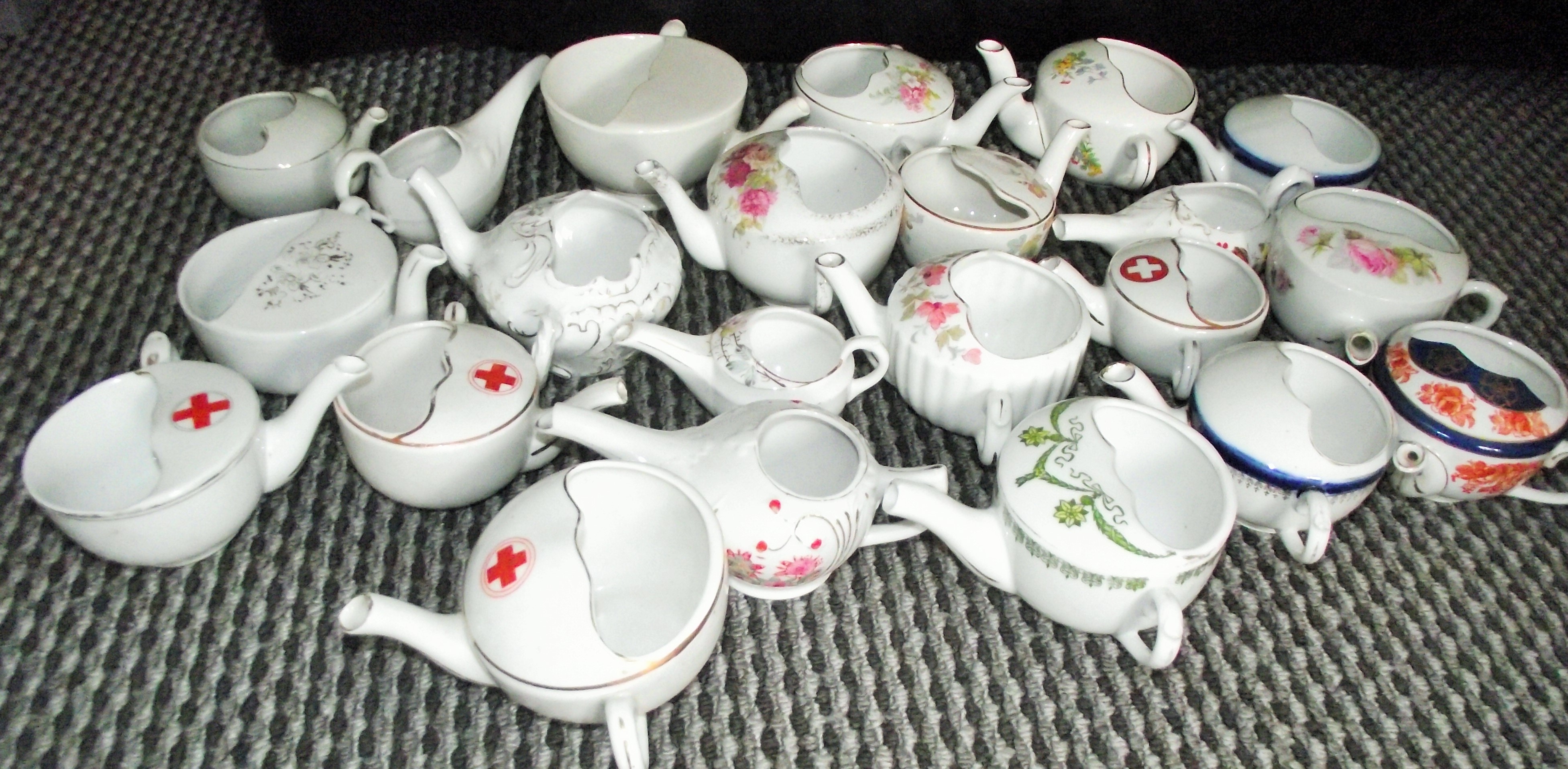 Collection of 20 various ceramic vintage Hospital Patient Feeding Cups or Invalid Cups