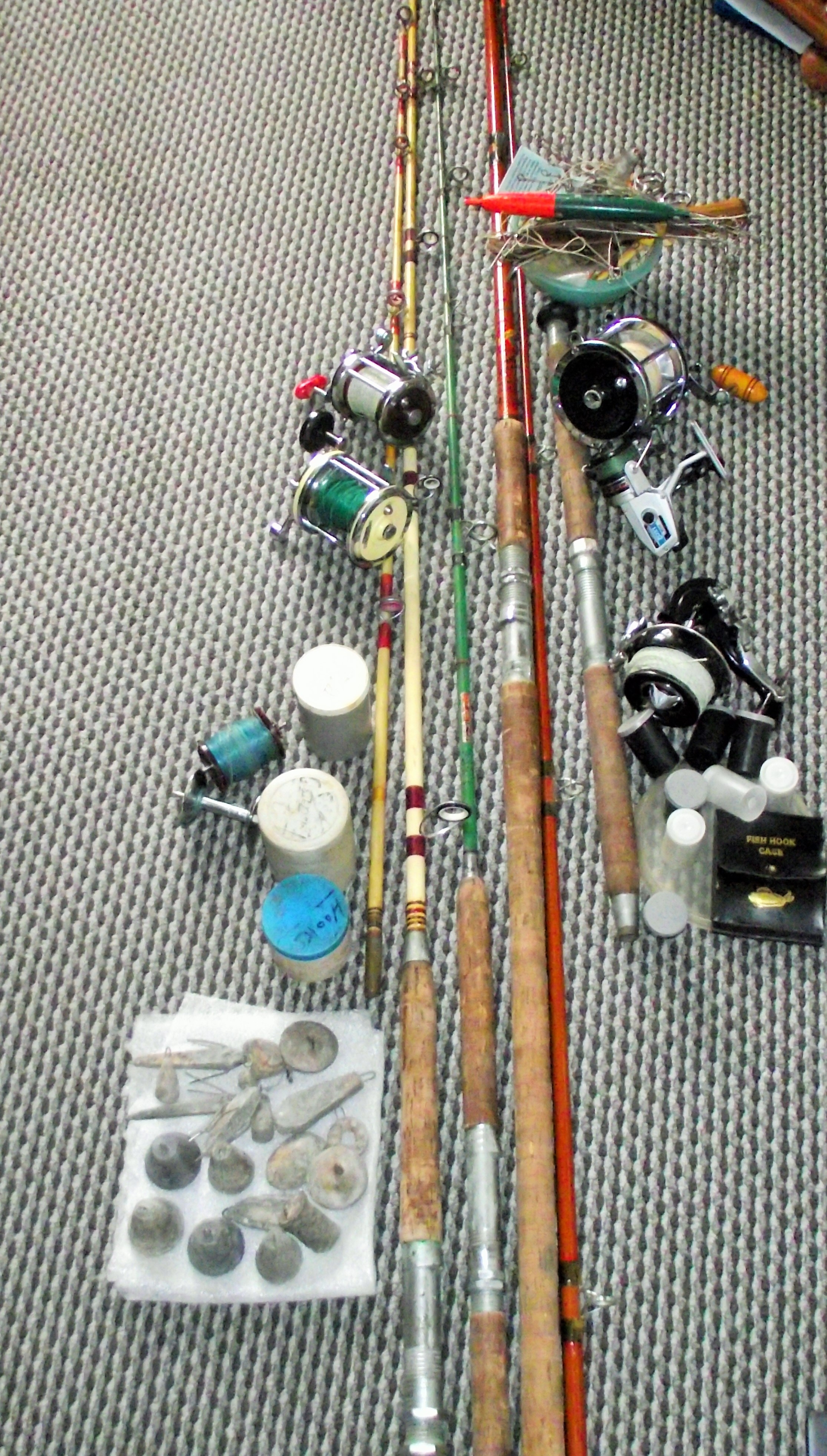 Large collection of Sea fishing reels & rods , lures , hookes , weights etc . (Garcia mitchell 624, Ryobi LX02 , Penn Senator6 , Penn Squider No140 , K p Morritts intrepid surfcast , RODS 12Ft Millbrolite, Dover best +1 other
