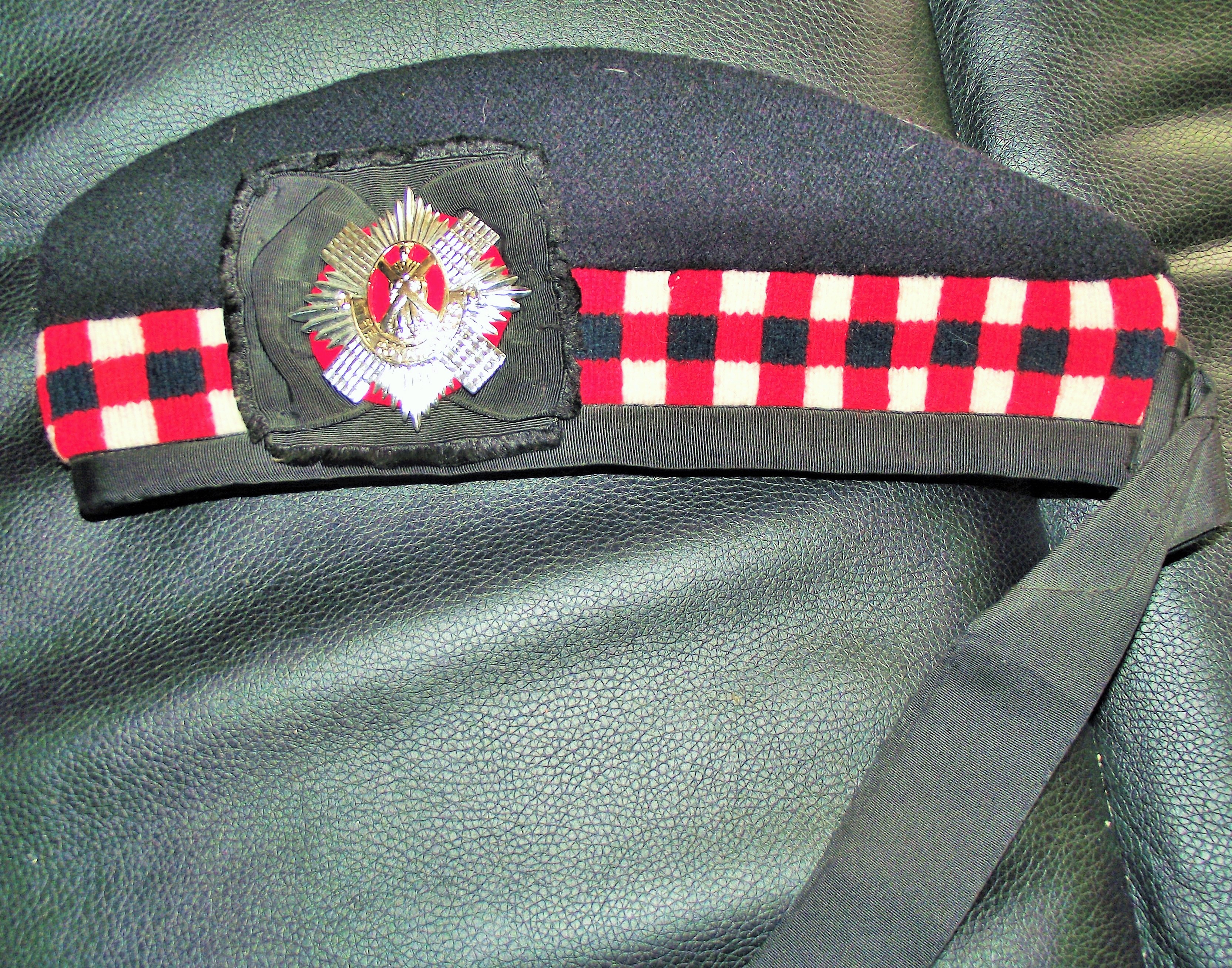 Cold war period Glengarry cap with The royal scots badge with a black rosette backing at back of badge