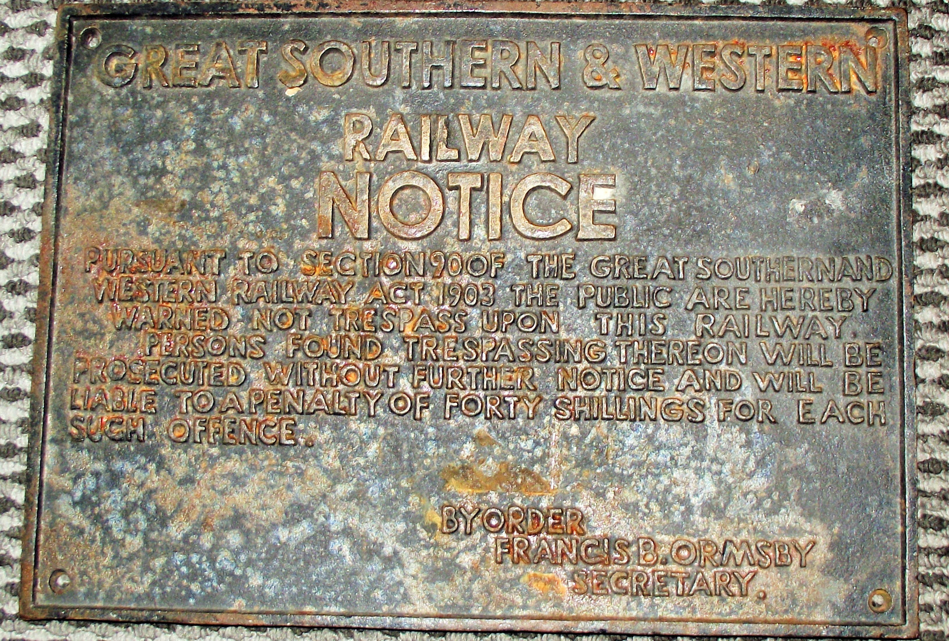 Large cast iron Great southern and Western sign 15×11″ approx