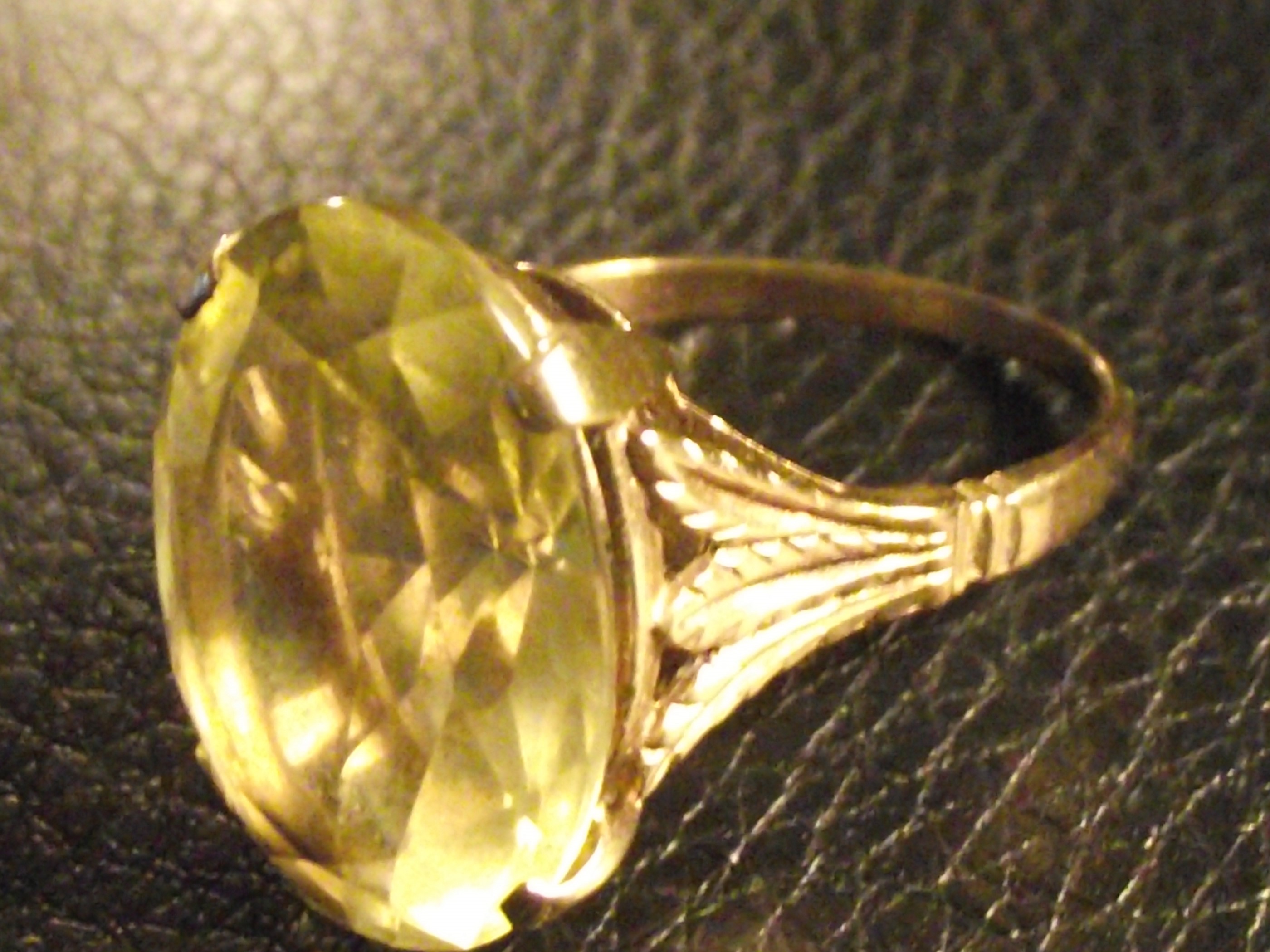 A 18ct gold ring with large centralfaceted stone marks rubbed tested 4.9g