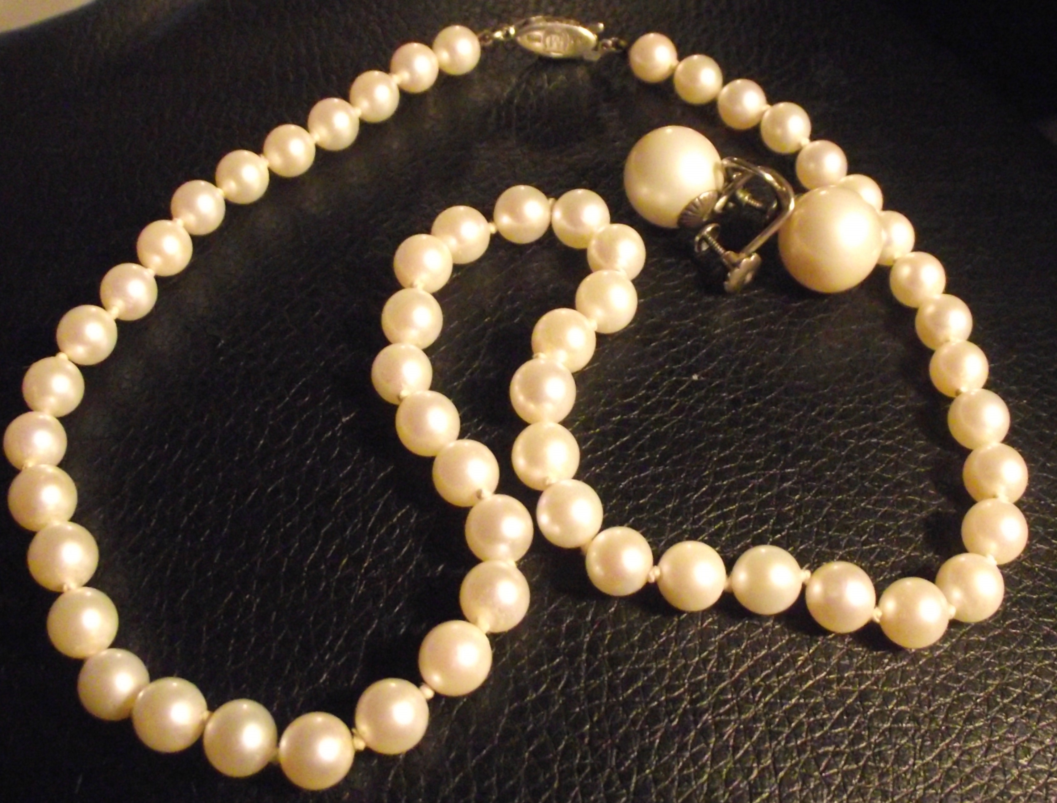 Ladies set pearls with 10k marked clasp plus pair screw fit pearl earrings