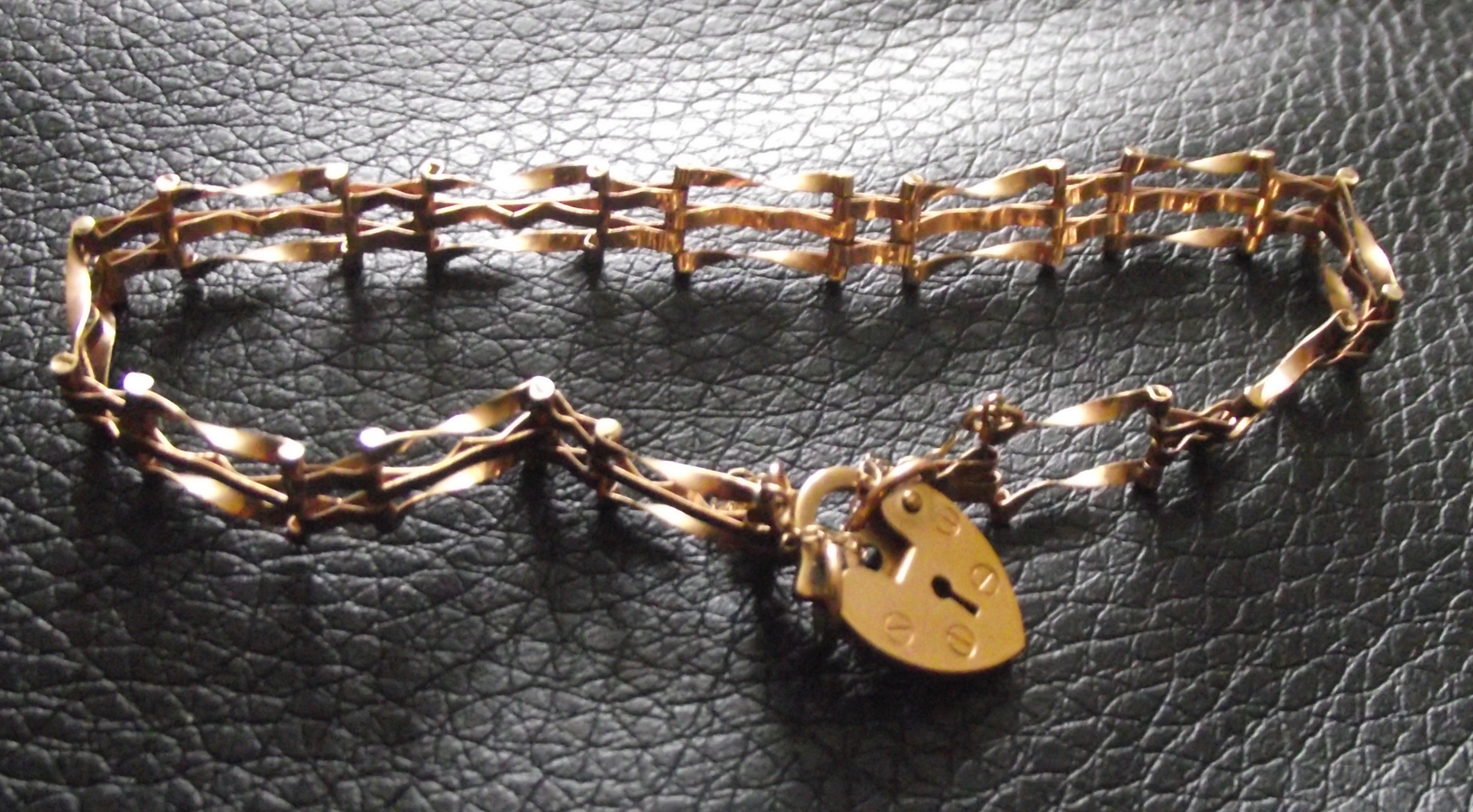 An 9ct gold antique style bracelet executed in the popular Victorian style, characterized by its intricate gate or trellis link construction. 3g approx full hall marks