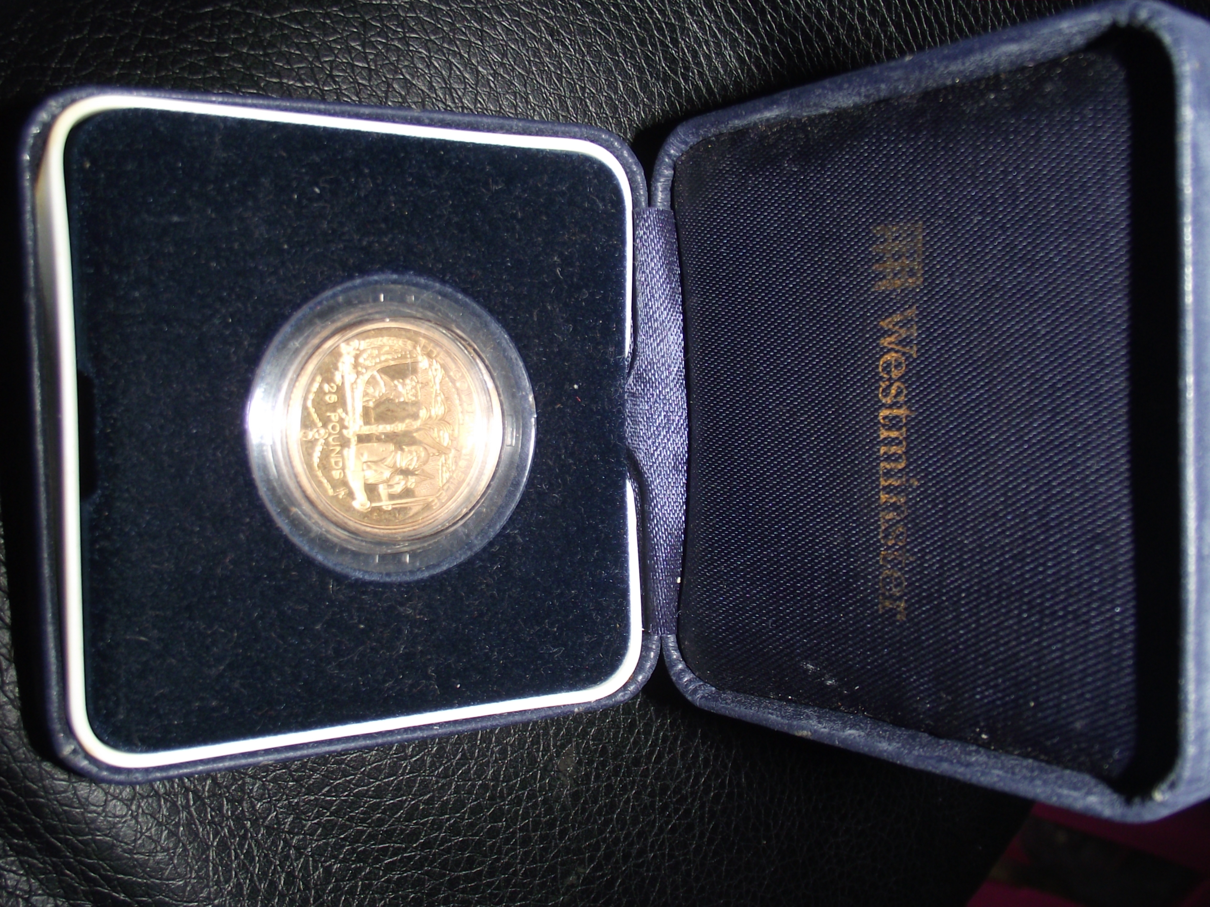 2002 Proof Guernsey £25 Gold Coin minted in 22ct gold .A proof coin with a face value of £25. One of only 5,000 produced, this 22 carat coin weighs 7.98 grams approx and depicts Queen Elizabeth’s journey back from Westminster Abbey in the Coronation coach on the 2nd June 1953.