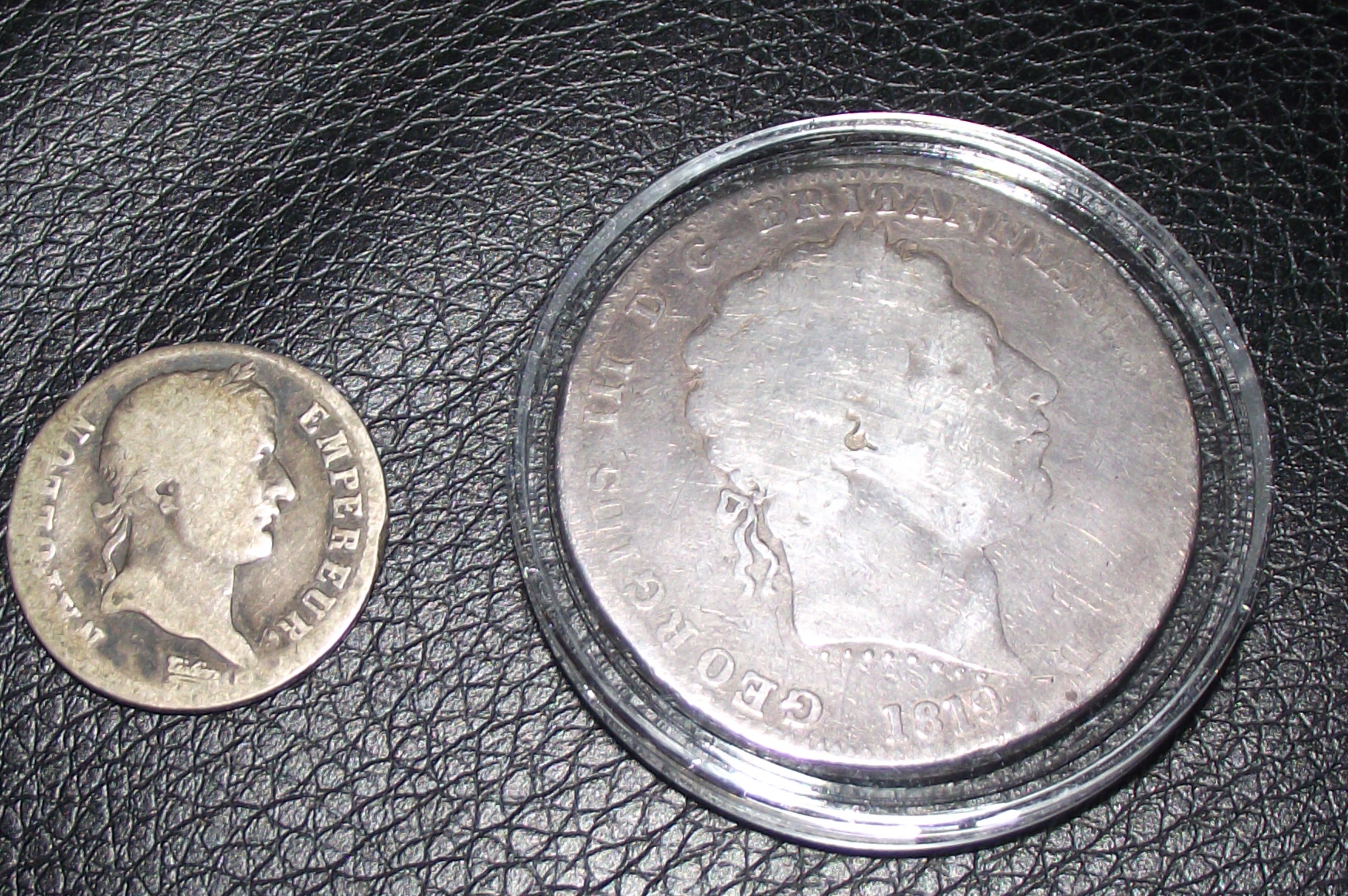 1819 George 111 silver crown + 1808 France Napoleon Demi 1/2 Franc Silver Coin