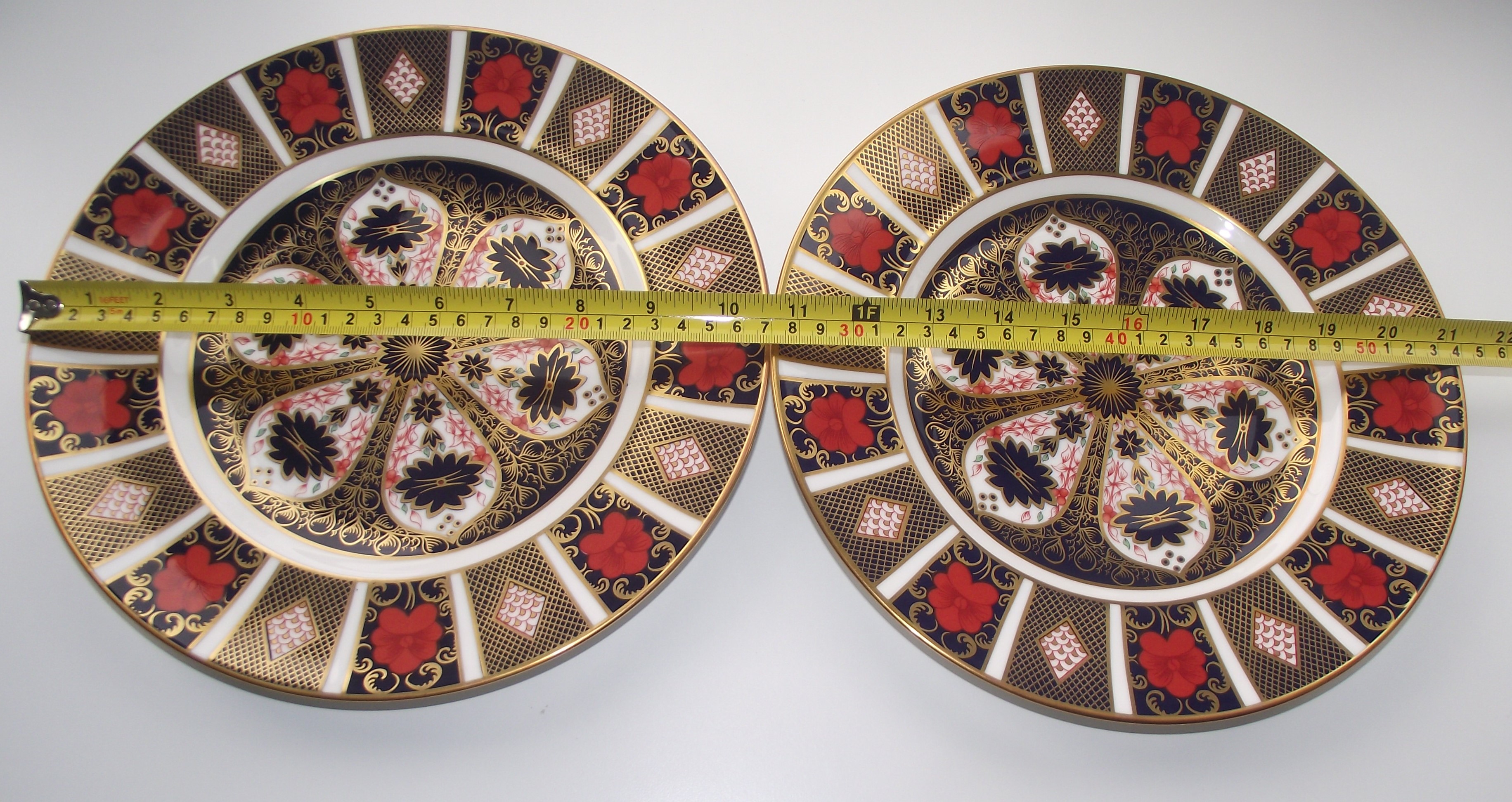 2 x 10.5" Royal Crown Derby Imari 1128 pattern dinner plates 1st quality