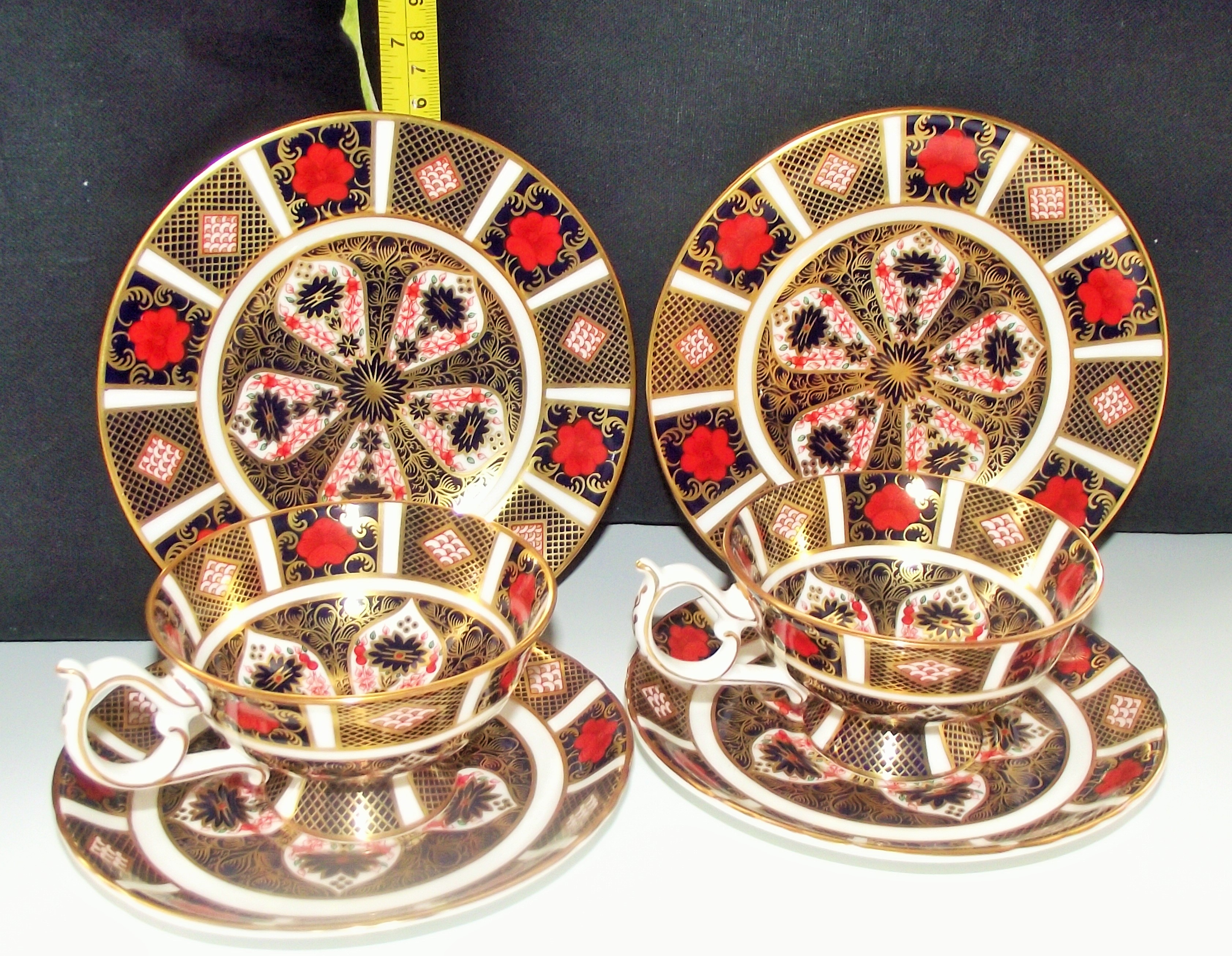 2 x Elizabeth Royal Crown Derby Imari 1128 raised cups saucers and side plate Trios 1st quality