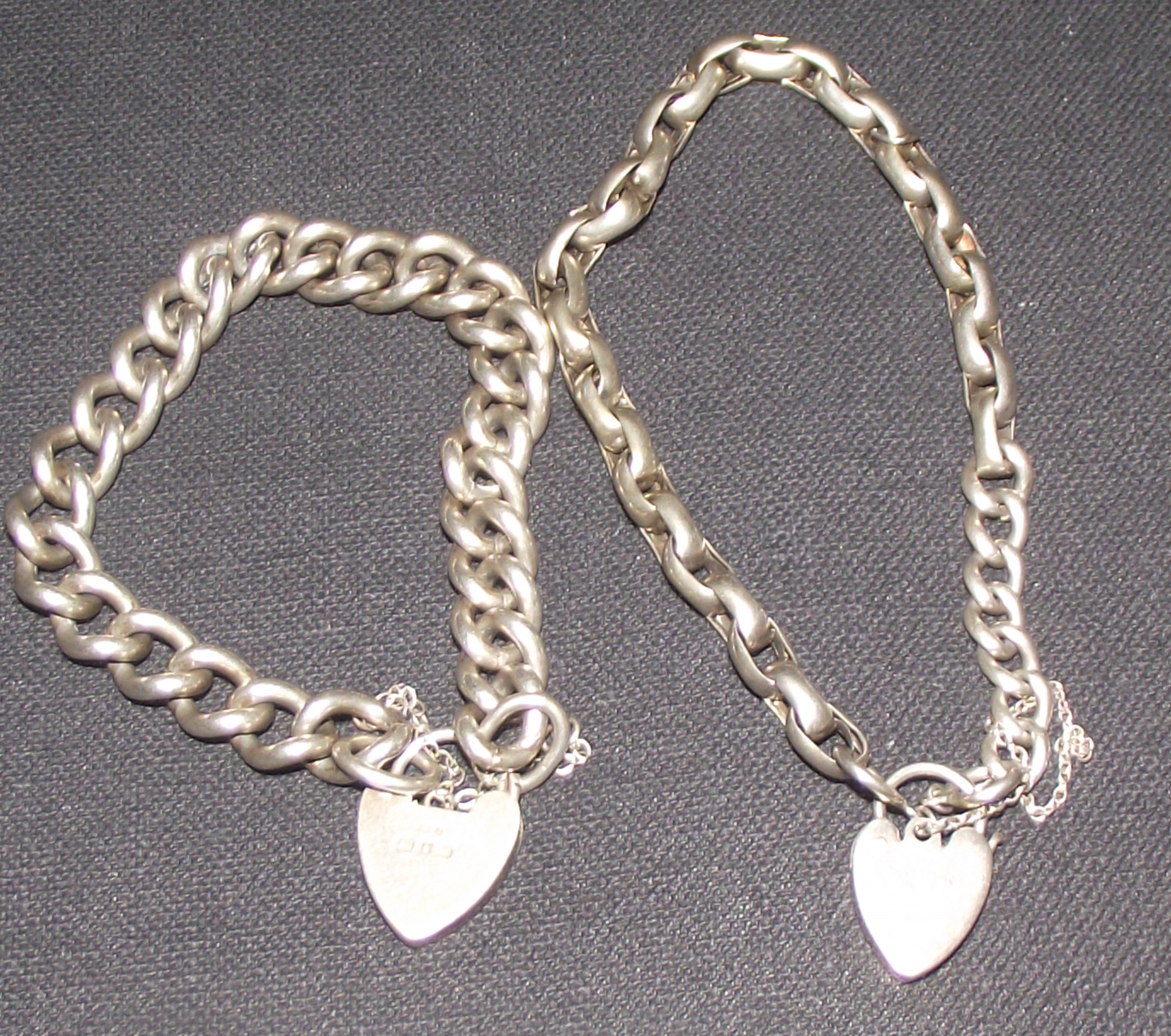 Both items are in good vintage condition with wear consistent with age. Visible surface scratches and light tarnishing are present on the links and the padlock clasps.
