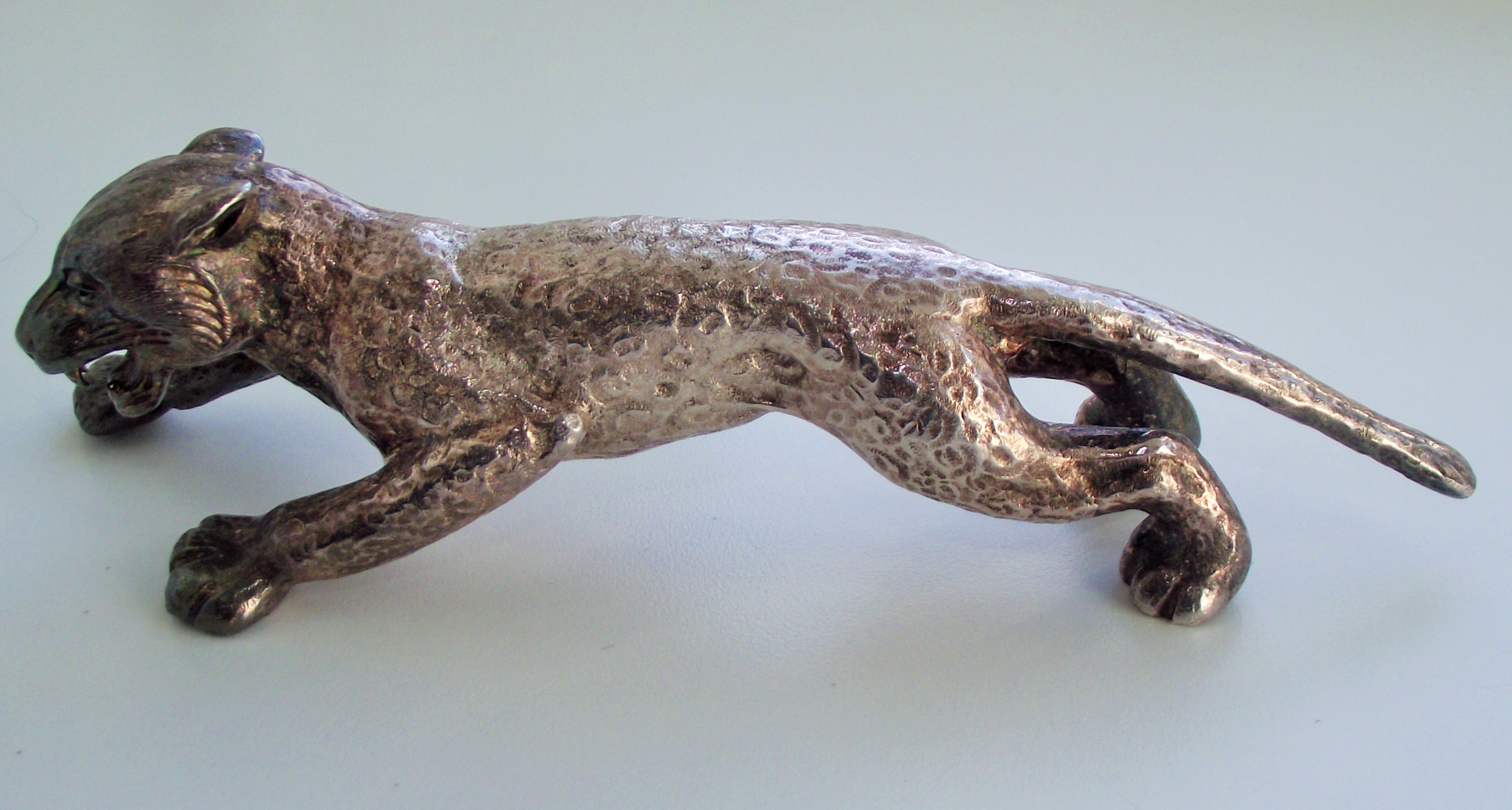Circa 1930 SS Jaguar leaping jaguar car hood ornament ( connecting holes in rear legs have been filled)
